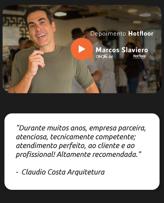 Mais de 500.000 DE WATTS instalado, o piso aquecido Hotfloor oferece uma solução de conforto térmico de alta performance.